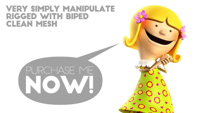 Rigged with biped ready for animation, included morpher controller smile.