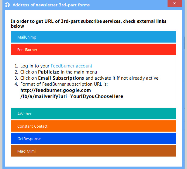 If you decide to go with MailChimp, just set your API key. We will then retrieve your lists. No need to look deep down into MailChimp to find the list ID!