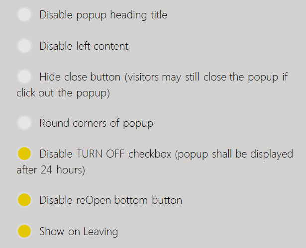 The popup behavior can be affected through various settings. For each popup, you’ll be able to decide: