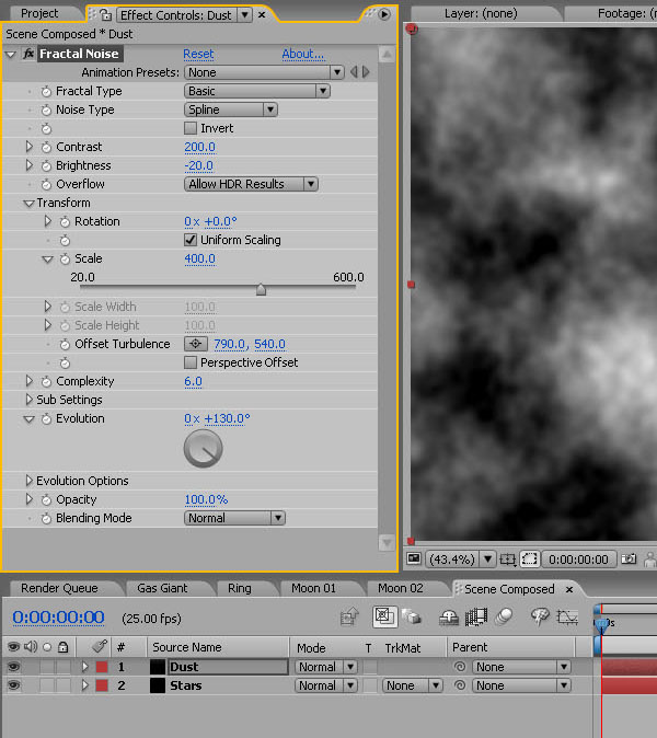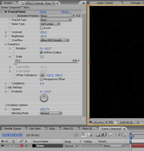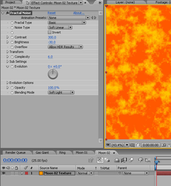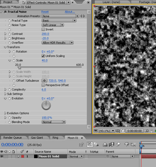 Before we put the planet together, we’ll make a couple of moons using Fractal Noise in a slightly different way.