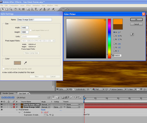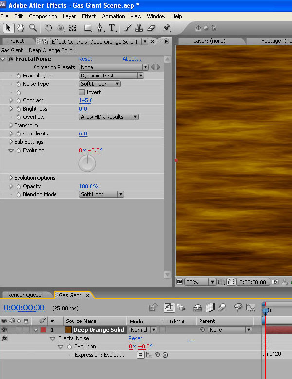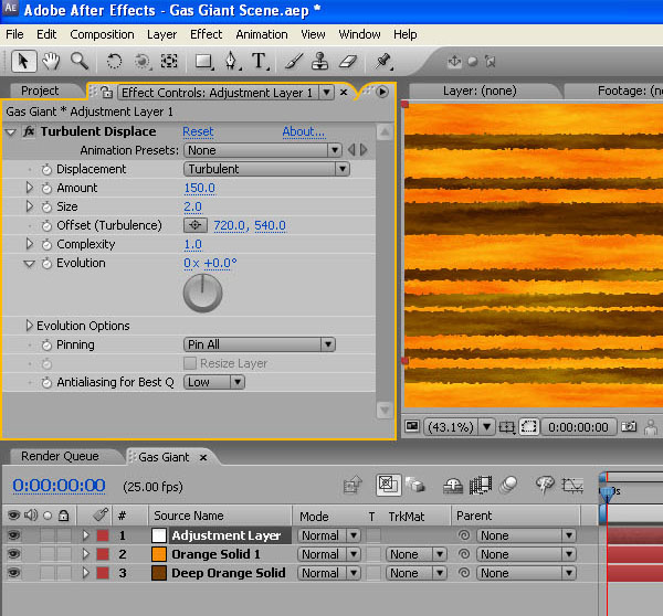 Open the Effect Controls panel for the Gas Giant by clicking on its layer. Now click the little padlock icon in the top left of the Effect Controls panel to lock it open.