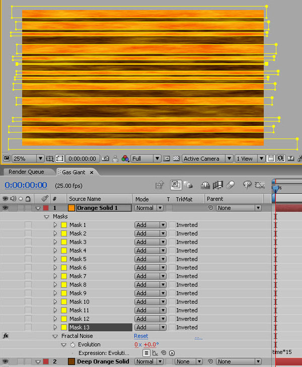 We’ll create the bands of cloud seen on Gas Giants by masking out sections of the top layer.