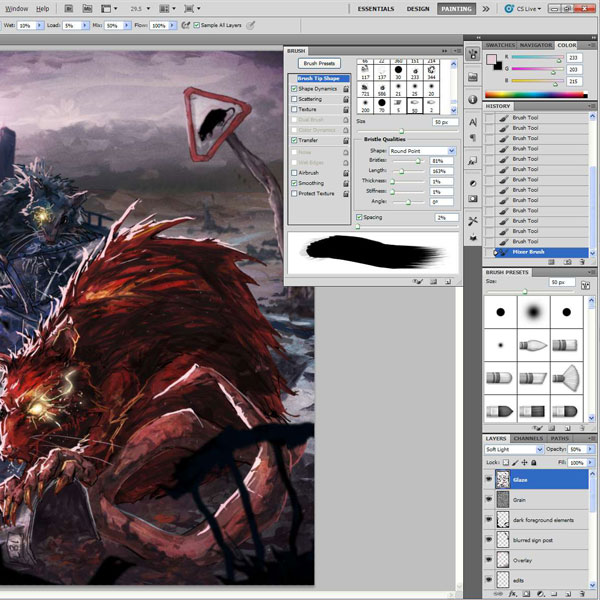 Set the Contrast to 300, the Brightness to -30, and the Blending Mode to Soft Light.