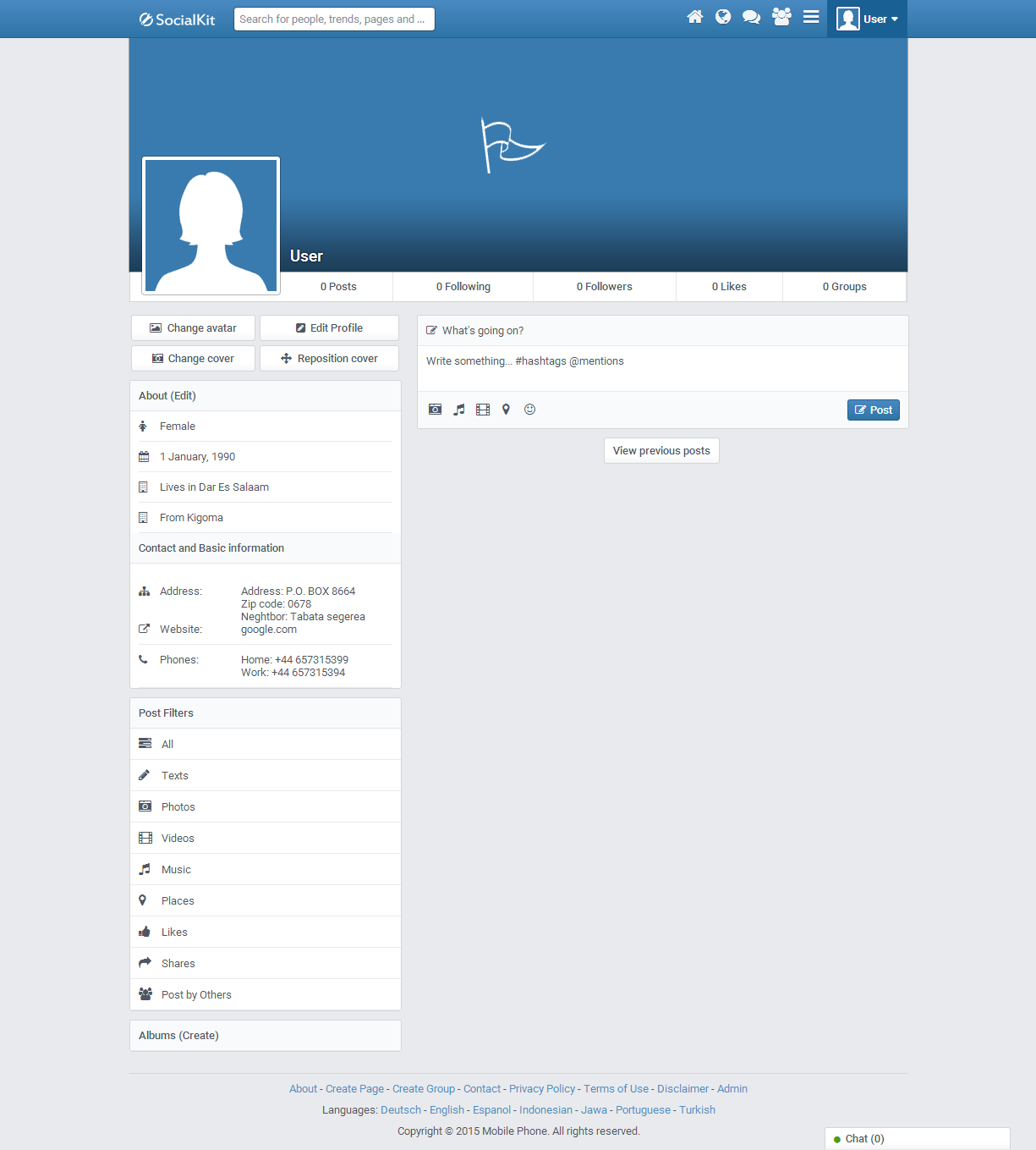 Contact and Basic Information for Socialkit is Addon that shows important details of the member in his timeline with changes in SETTING panel to edit it.