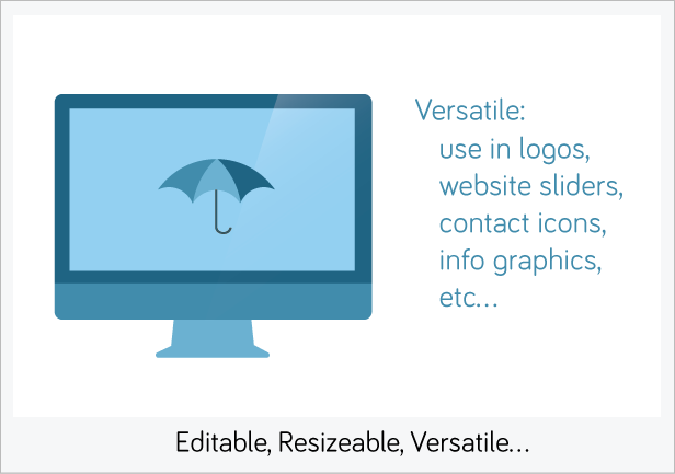 Suitable for use in a logo, info graphic, icon, mascot, show case sliders on a website, contact info, business cards, or most anything. Check out my profile to see it in use. (*umbrella isn’t included in download.)