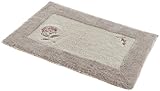 Croscill’s Flower Blossom bath ensemble dresses up your bathroom with a beautiful floral design that is seen throughout all pieces of this collection. The 100-percent cotton, bath rug features a large flower in shades of lavender and pink, on a linen background. The rug is then bordered with a taupe band on all four sides. The rug measures 32-inch wide by 20-inch tall. Added to the Flower Blossom shower curtain and towels, and you have a true decorator look for the room.