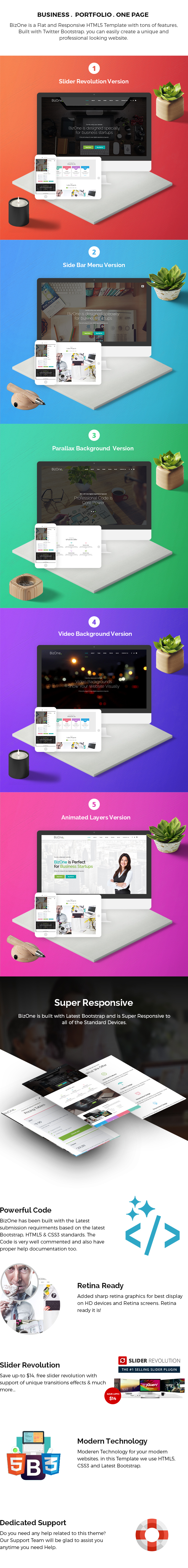 BizOne One Page Parallax, HTML5 and Responsive Template suitable for any creative or business startups. Multiple home layouts and Navigation styles are included in this theme with lots of CSS and JQuery animations, a perfect theme for Business Startups, web studio and creative agencies. The colorful widgets will help anyone to customize according to their branding colors. This theme is very well commented and also have proper help documentation too.