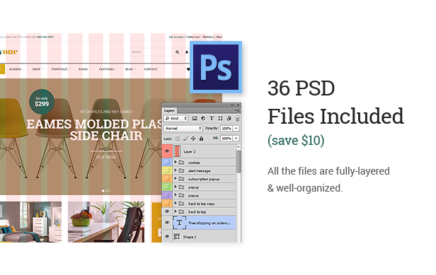 • 35 Fully-layered & well-organized PSD files (save $12);
