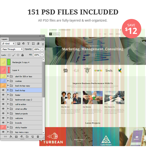 - 151 Fully-layered & well-organized PSD files (save $12);