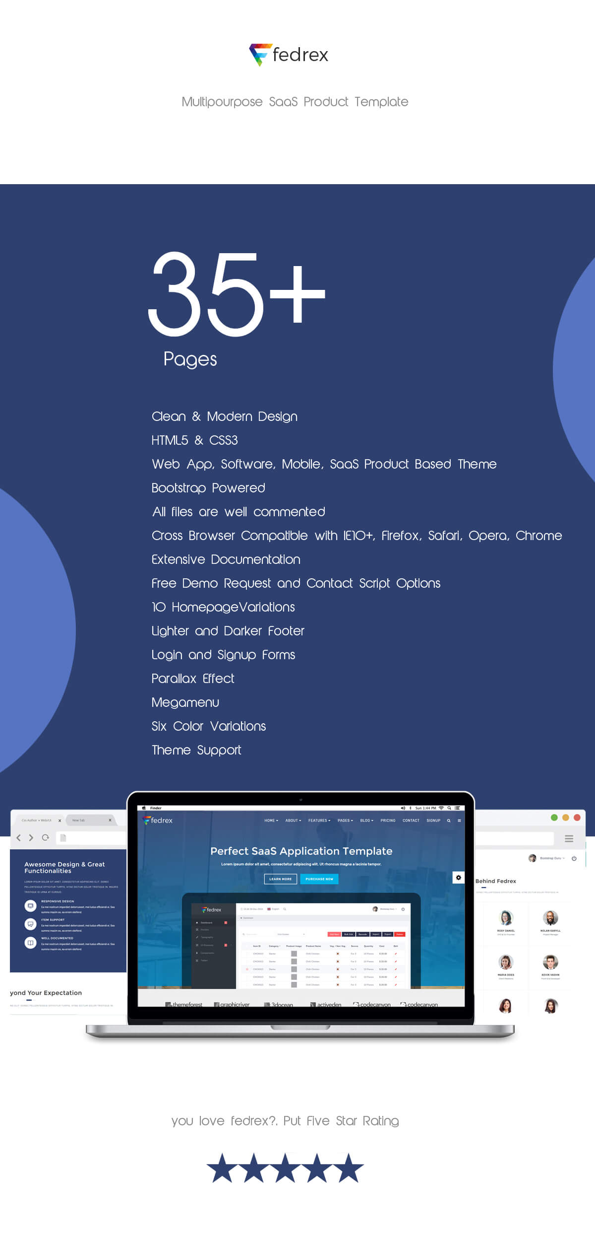 Fedrex is a Multi Pourpose template for Web Apps, Softwares and SaaS Products. Which Includes around 35+ HTML5 Webpages made with Bootstrap 3.3.7 Framework