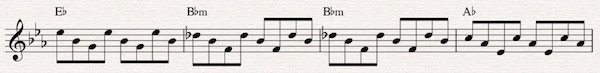 Pay attention to how the Db of the Bbm chord feels just a tad out of place.