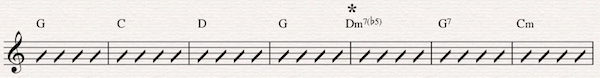 The Vm chord has a soft but somewhat unexpected sound. Our ears are so used to the major V that the minor third can sound surprisingly fresh for just a single half step adjustment.