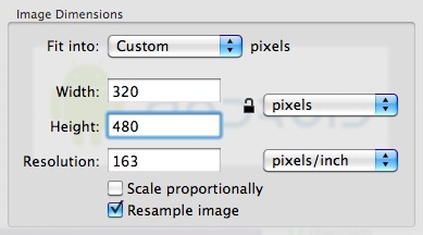 • iPhone/iPod Touch: 320x480px, 163 ppi