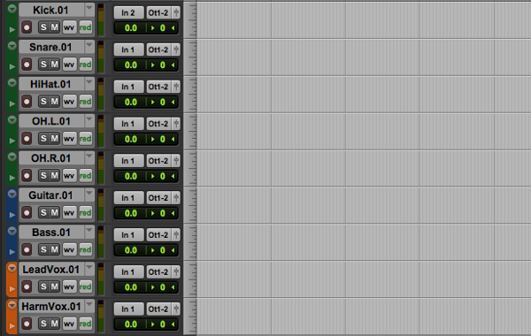 Good habits starts right at the beginning, setting up the session in the following manner will help pave the way for the use of playlists. You should append ‘.01’ to the name of all your tracks so ‘Guitar’ will become ‘Guitar.01’. This is to facilitate the way Pro Tools names your new playlists. If you leave your track name as ‘Guitar’, Pro Tools will name your next playlist as ‘Guitar.01’. However, if you name your track as ‘Guitar.01’, Pro Tools will name your next playlist as ‘Guitar.02’. Naming your tracks properly will help you refer to your takes better in the editing stage, ‘Guitar.01’ can be easily referred as Take 1 and so forth.
