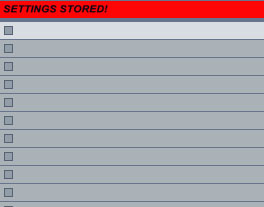 Click the Track Activator Switch for the Track Activator(the last track) to switch it off, then switch it on again. You will momentarily see the “SETTINGS STORED!” text appearing on the track title’s once you switch the track back on.