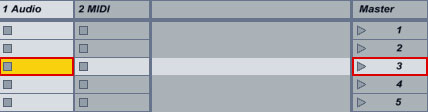 Let’s open up TrackDefsUserConfig.py. Notice the line NAVIGATION_HIGHLIGHT = 0. Replace 0 with 1. While you are at it, find the line EXCLUSIVE_ARM_ON_SELECT = 0 and replace 0 with 1, also. The first line’s value of 1 will display a highlight around the selected Clip. The second line’s value of 1 will record arm any track that is being selected and disarm all other tracks. Restart Live and click on any empty audio or MIDI slots. Notice the red border around each selected clip! The scene name corresponding to a certain clip, also gets highlighted.