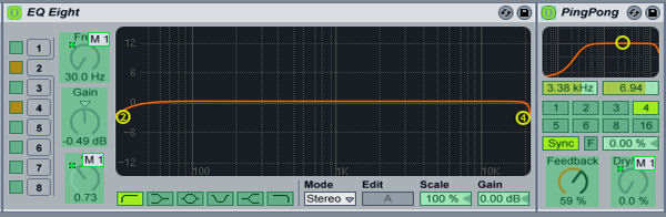 Before we start let’s check the devices which will process the audio signal(s). We will need an EQ a Ping-Pong Delay, an Auto-pan, a compressor, and last but not least a limiter at the end of the signal chain.