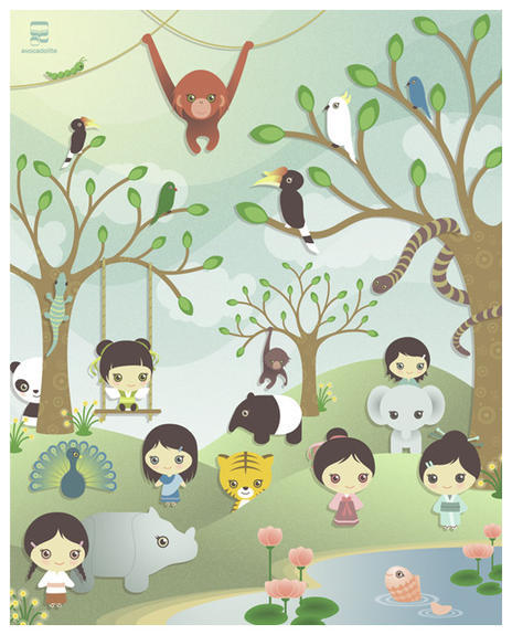 Although they say blue is for boys and pink is for girls, I think this illustration would appeal to both alike. Limkis has used her unique vector techniques and creative character design to craft this elegant and playful children’s illustration, which as a grown up, I’d be proud of display on my own walls!