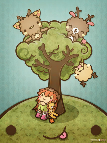 Staying on a similar “kawaii” style, Squidpig has created a cheerful scene. An inspiring style is shown here, with the bold line art and shapes mixed with a textured/pattern fill to give it that extra bit of refinement.