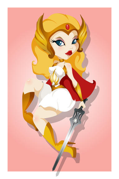 Hands up if you were a fan of He-Man and She-Ra as a child? I loved She-Ra and so this piece by FlashParade grabs me straight away. Great 80s fan art rendered in a character style that again utilizes the use of big eyes to create a doll like impression.