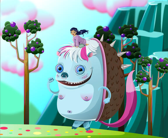 I remember seeing this piece for the first time and I fell in love with it straight away. I personally think of the bizarre style of “Ren & Stimpy,” a little demented and a little quirky, yet still ever appealing to a young audience. This piece unites human with a comical creature to help children imagine how big the character would be in person and what it would be like to interact with it.