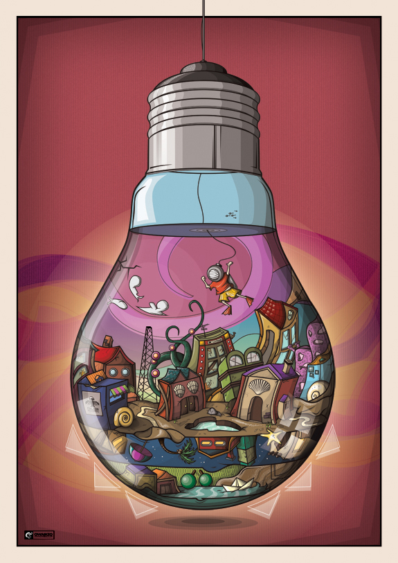 Owaikeo‘s work is always inspiring and this piece is the tip of the iceberg with his more conceptual work. Although the initial impression is that it’s not really a children’s illustration (Where’s the bright primary colors? Where are the adorable characters?), I’d beg to differ. In fact, this sort of illustration is the type a child and adult alike could sit staring at. An illustration that expands the imagination is a great theme for any children’s illustration!
