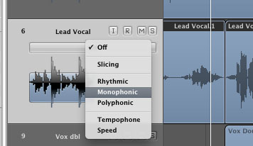 Select each track, one at a time, and set them to ‘Monophonic’ in the Flex Time menu.