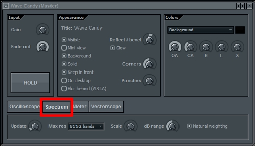 If you hit and hold a note right now you will probably notice that it doesn’t work very well. That is because you have nothing to look at! In your master channel, add the plugin Wave Candy or some other spectral viewer plugin. If you choose wave candy you will notice that it loaded two windows, one of which controls the plugin and the other which shows the audio data.