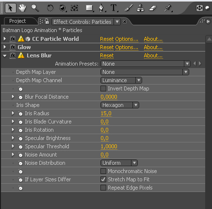 Go to Effect->Blur and Sharpen->Lens Blur and set the following properties. Keep that it mind while you are working with the animation turn off the Lens Blur effect because this is very render heavy.