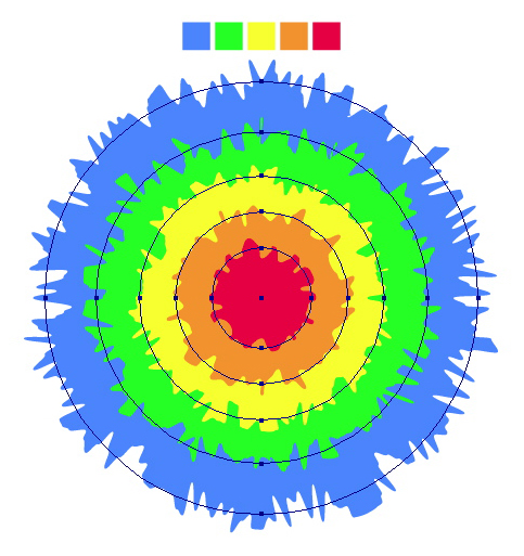Repeat the offset process three more times, using the outermost circle to offset. You can vary the offset amount if you like. Recolor the new circles as in the image below.