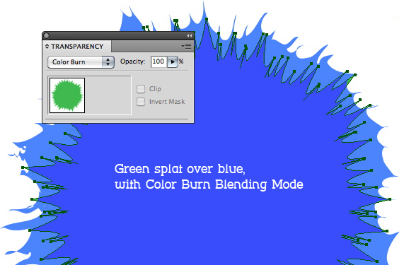 If you look at a t-shirt that’s been tie-dyed, you’ll see that the colors blend and bleed into one another. You can mimic this effect with Blending modes. Create new circles and size them in between the other colors so they overlap. Apply your Graphic Style and other effects, then experiment with changing the color and blending modes. Here are two examples: