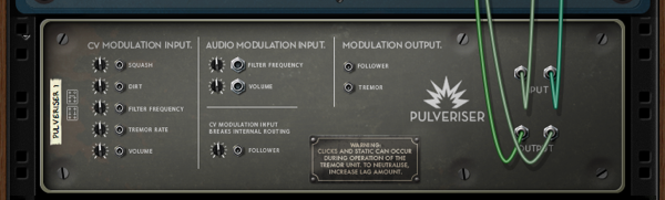 A quick scroll through the factory presets will show you that the pulveriser is capable of anything from mild compression and overdrive to pretty wild modulation based effects. I would suggest starting with the factory patches to get your head around how this thing operates.