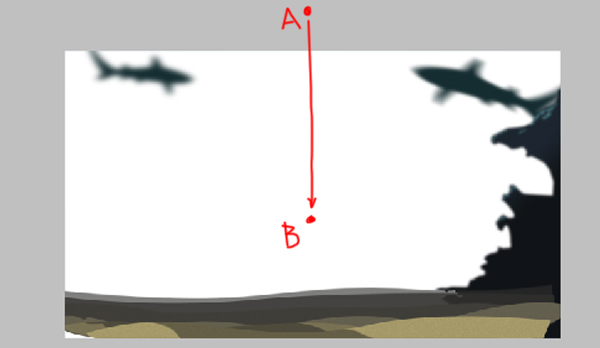 Now, we have to work on the background. We’ll start with the sand. Make a path with pen tool and fill it on a layer.