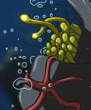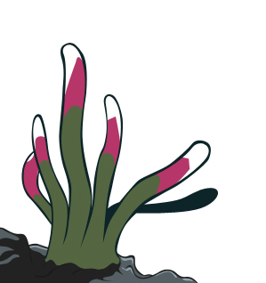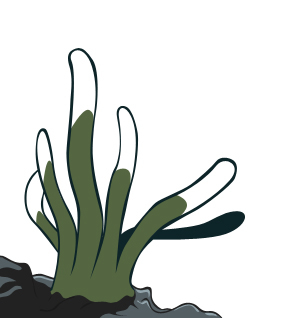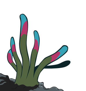 Use the same technique to produce the reef. Just draw a simple path and add a Gaussian Blur. You can add some highlights be adding some light spots with a blur.