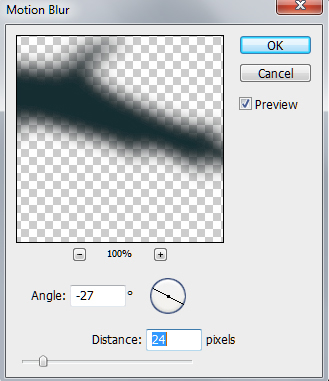 Now apply a motion blur. Filter > Blur > Motion Blur. Set the blur at an angle to give this impression of movement.