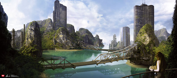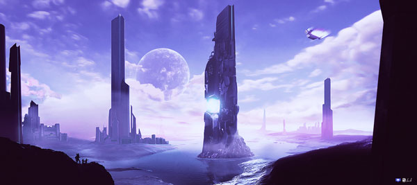 Q A lot of your illustrations are shots of scenery in futuristic, and foreign lands. What exactly draws you to painting these types of scenes?