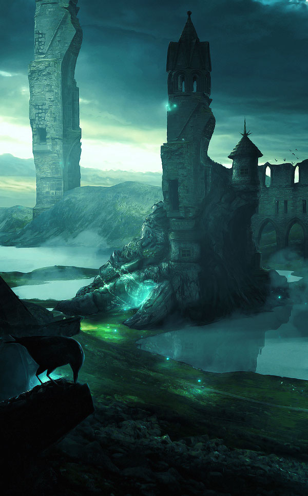 Q “The Fallen Empire” takes the viewer to a beautiful realm of fantasy that is unique to your style of art. Please walk us through how you created this illustration and what exactly is going on in it.