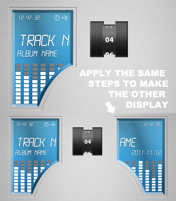 You will have to follow the exact steps from Step 12 to Step 15 to mirror the Display in the right side of the UI. You can play around, get creative about it, as it is one of the most important things while designing.