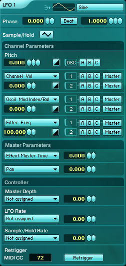 To make LFO 1 work, go back to the Patch window and add LPF 4 Pole Filter in a Master section. Increase dB to 1.