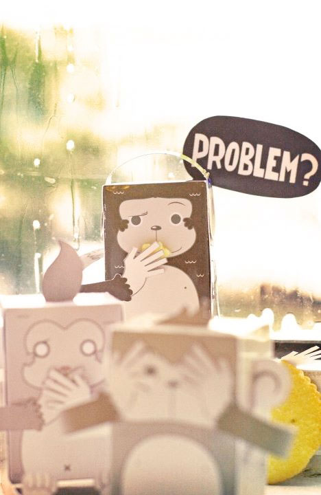 "Hi, these are my three wise monkey… see no evil, speaks no evil, and hear no evil… but instead of covering his ears, the last monkey use headphone lol~ he’s kinda naughty… Well, this is my first community project… Hope you enjoy it~