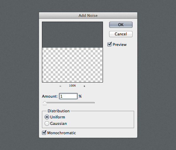 Go to Go to Filter > Noise > Add Noise and use the settings from the image below. Then double-click on this layer to open the Layer Style window and use the settings from the following image for Gradient Overlay.