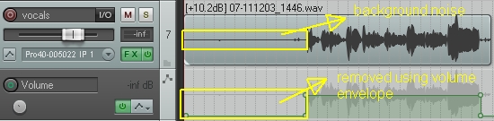 Remove the unnecessary background noise before the start of the vocals. You can do this using volume track envelopes. This feature is available in most DAWs including Reaper.