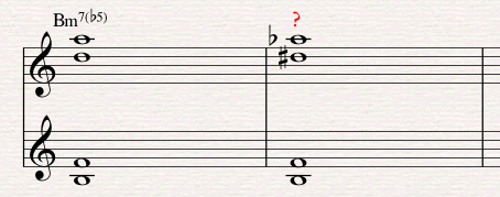 As explained in the previous tutorials, a chord is “altered” by lowering or raising one or more chord tones by a half step. Since there are four pitches in a m7b5 chord (or half diminished 7th chord) that gives us four choices for tones to alter, 1 b3 b5 b7.