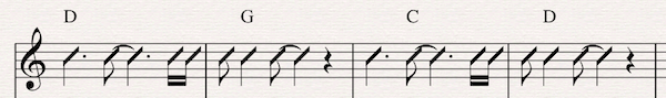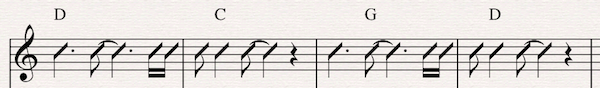 In the key of A, that’s: A E/G# F#m E D A/C# Bm G A