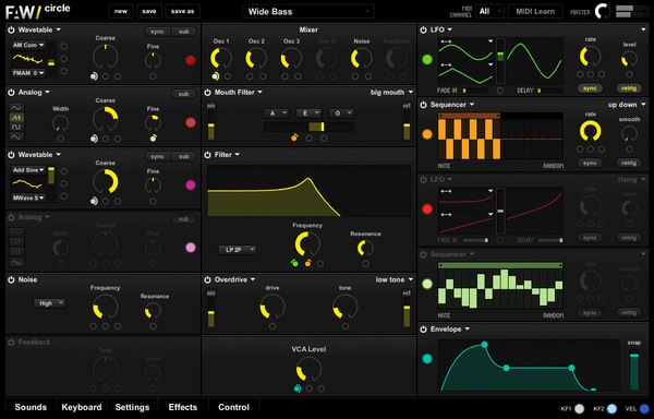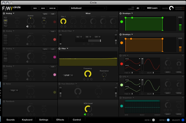 For this tutorial I have chosen to use a synth called Circle to demonstrate the initial creation of the effects patch. Unfortunately it’s not free but when I was searching for the right instrument to use, it ticked all the right boxes. It is available as VST, AU and a standalone application, and it’s also Windows and OS X compatible. It runs for 20 minutes in demo mode, so there should be plenty of time to try and recreate the patches. You can download the demo here.
