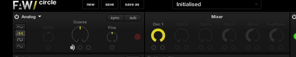 Looking at the initial patch I have constructed using Circle, you should be able to see that only one oscillator is turned on and that it is a saw wave. Most synths tend to use one saw wave oscillator in their default patch, more out of tradition than anything else but it is certainly a good idea to build your new patches this way, then any synth you use will have the same starting point.