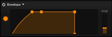 The amount of modulation can now be set, and here I have moved the fader all the way to the bottom giving the envelope a negative polarity. Using the snap control on the filter you can adjust the curve of the fade which has now been created. A perfectly sculpted filter sweep has now been created which sounds considerably smoother than the manual version.
