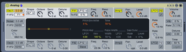 The envelopes are also reset, creating an on/off effect, with no attack or release at all. Both the amplitude and filter envelopes have identical settings at this point to avoid any confusion. The LFOs are all at their default values and no routing is taking place. The result of all this initialization is a very simple and straight-forward saw wave patch with no frills. Try making one of these for your favorite synth, or maybe there is one included in its sound bank.