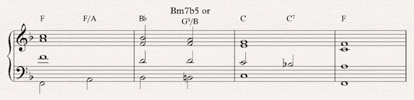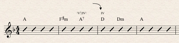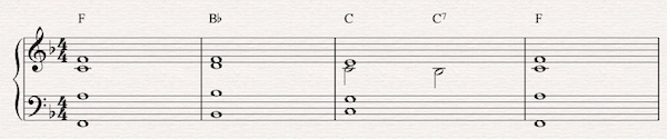 The IV chord is so basic and common that it doesn’t require much discussion. Here’s a very traditional I-IV-V7-I progression: