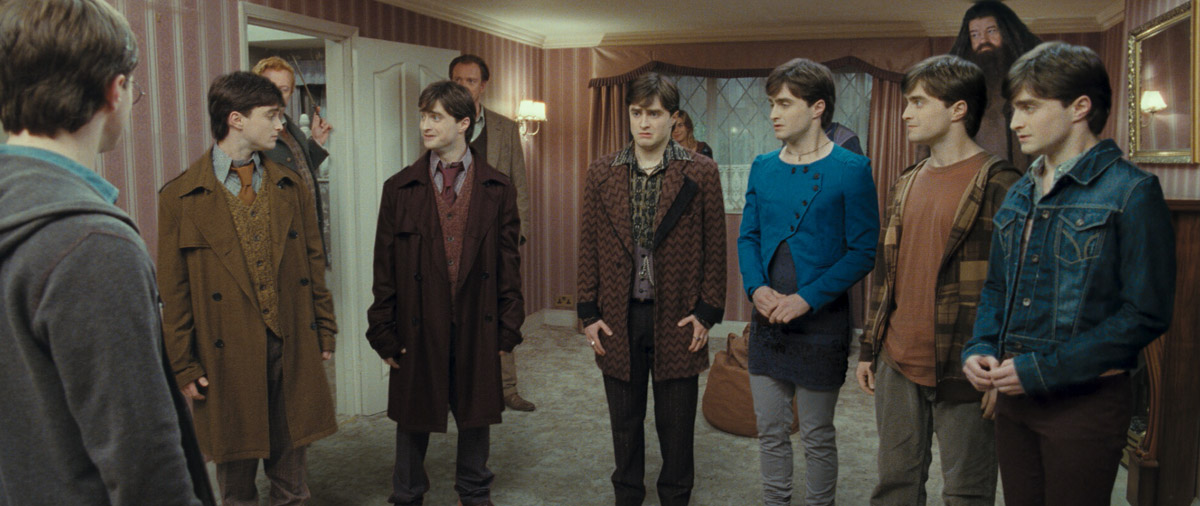For this scene the actors were shot on the set acting out the transformation, sometimes adjusting their height to be the same as Harry. A second set of plates involved Harry acting out every character and he had to dress like all of the other actors. All of these actors except for Harry were shot only for their facial performance. To capture the facial expressions volumetrically they used The Mova Countour Capture rig that is designed to hold 28 cameras around the actors. A phosphorescent make-up was applied to the actors which was then picked up by a series of cameras and produced a tracked surface and mesh. The data was then processed at MPC in conjunction with a facial rig built for each actor and finally, it was animated building skulls inside the heads to keep the facial mechanics of each character as realistic as possible.